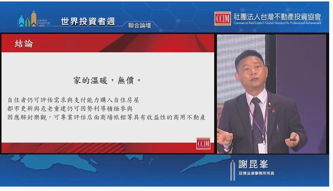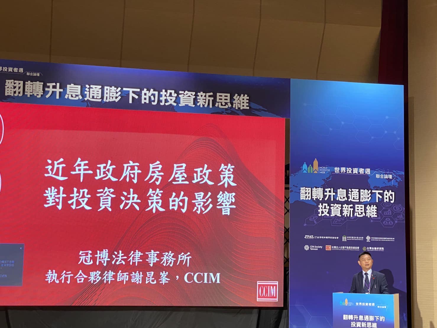 本所執行合夥律師謝昆峯受邀參與「世界投資者週聯合論壇」,針對「近期政府政策對不動產投資決策的影響」主題分享